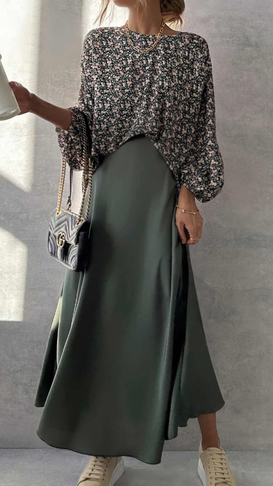 Falda Midi Satinada – Sofisticación con un Toque Casual
