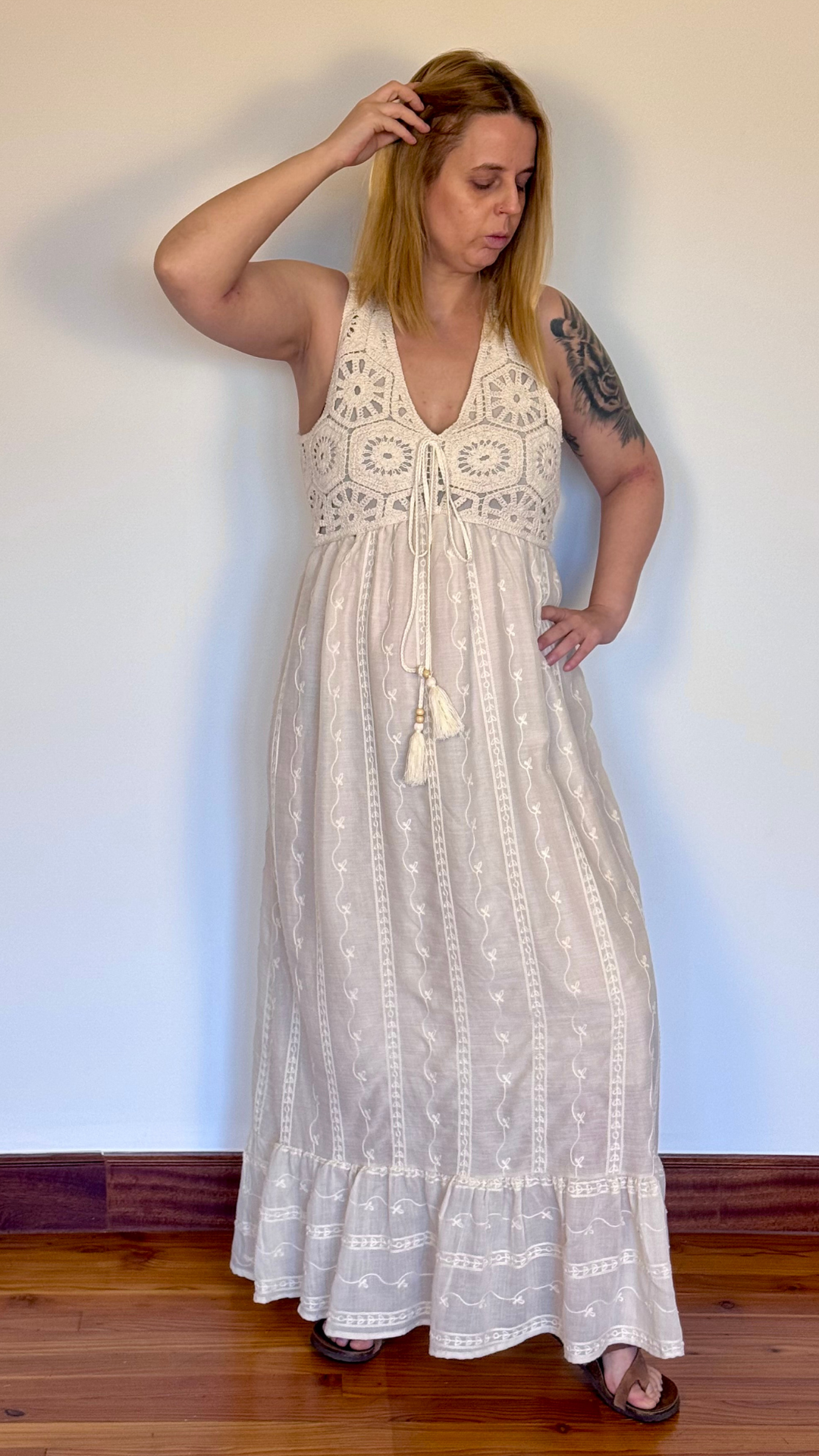Vestido largo crochet & plumeti – Estilo boho con alma delicada